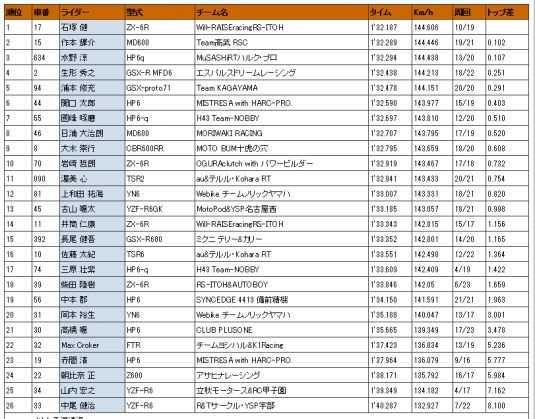 上周在联合测试中突破自前的最佳记录时间,保持好状态的情况下参加了冈山战,FP1道路有点潮湿,但是为了确认新型雨用后轮,集中精力的周转的5号选手。但是转到路面干的FP2后,有一点破坏了节奏,得到了比最佳时间相差0.7秒最终结果。